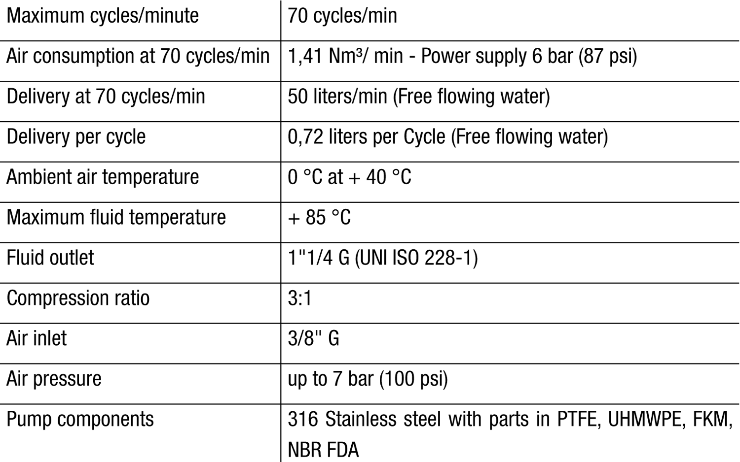 These pumps do not require any special maintenance, are sturdy, and reliable, easy to disassemble for periodical cleaning or for sanitizing the single components.