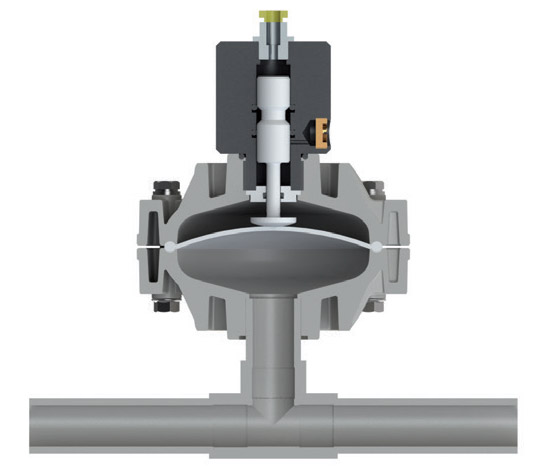 The active pulsation dampener is the most efficient system for preventing pressure oscillations in the diaphragm pump flow.